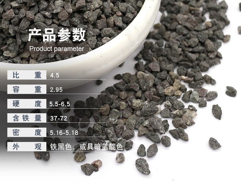 磁鐵礦濾料是一種多層水處理濾料,也是常見(jiàn)的一種水過(guò)濾濾料,在地下水 工業(yè)中循環(huán)水  鍋爐補(bǔ)水等中用可以除鐵 除猛 除氧。在重金屬?gòu)U水中使用效果很好。